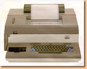 | 5 level (bit) Baudot code page printer speed 50 - 100 bauds (switchable) metal type wheel printing mechanism first fully electronic teleprinter, available as ASR, KSR and ESR version ESR=Electronic Send and Receive, 4 kbyte memory microprozessor controlled machine from the peak of the TELEX era |