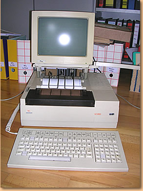 | 5 level (bit) Baudot code page printer speed 50 - 200 bauds (programable) 9 needle matrix printing mechanism, printing line by line CRT screen and electronic memory 3.5" floppy disk storage unit or paper tape attachments optional Modernized version of Lo3000. Last ever produced teleprinter model by SEL. These machines were build in a time where Telefax already replaced TELEX service. Already marketed unter ALCATEL logo. |